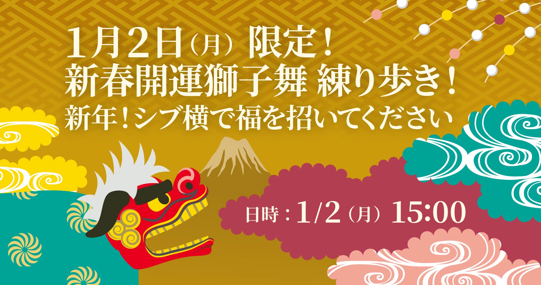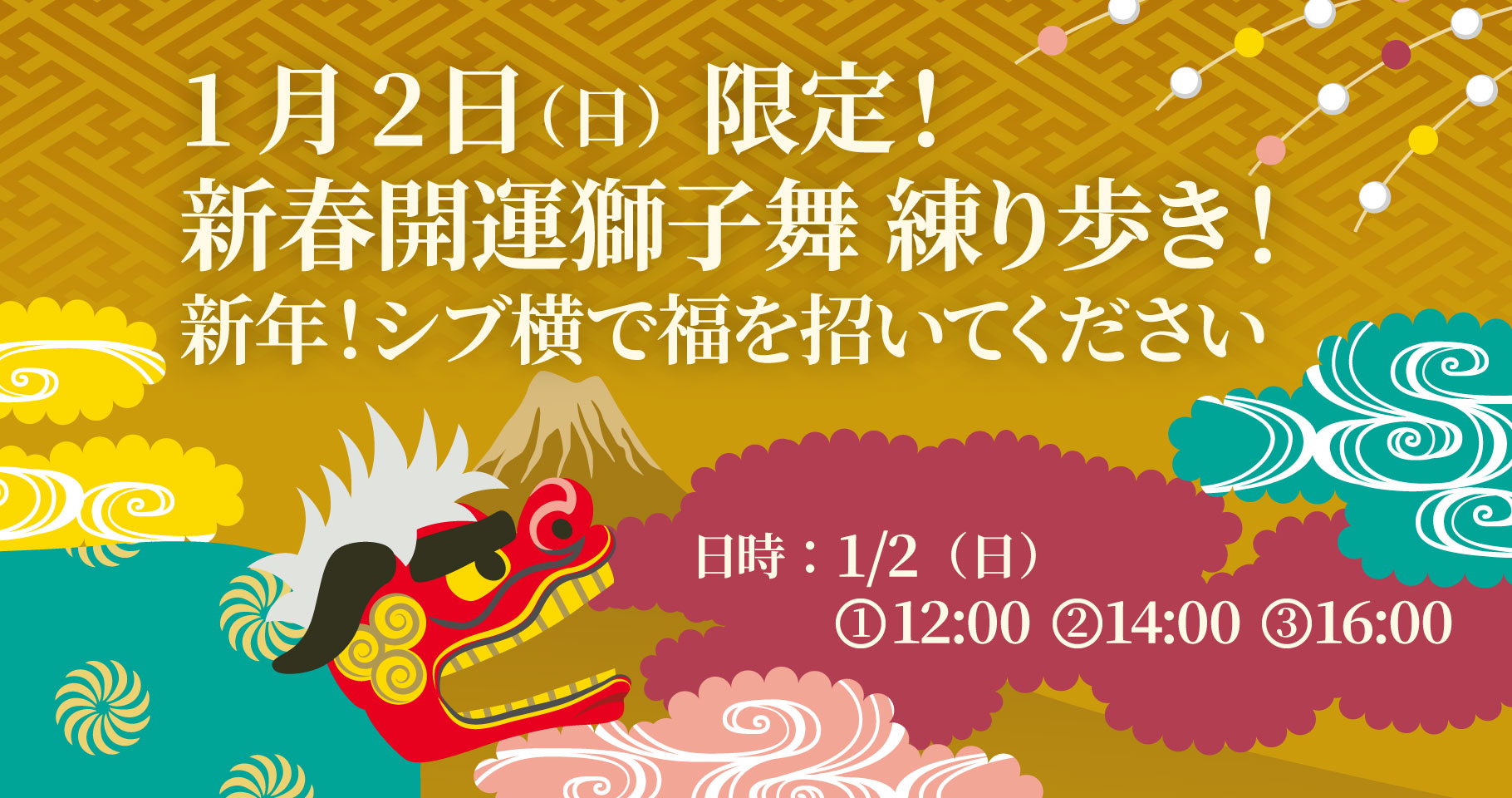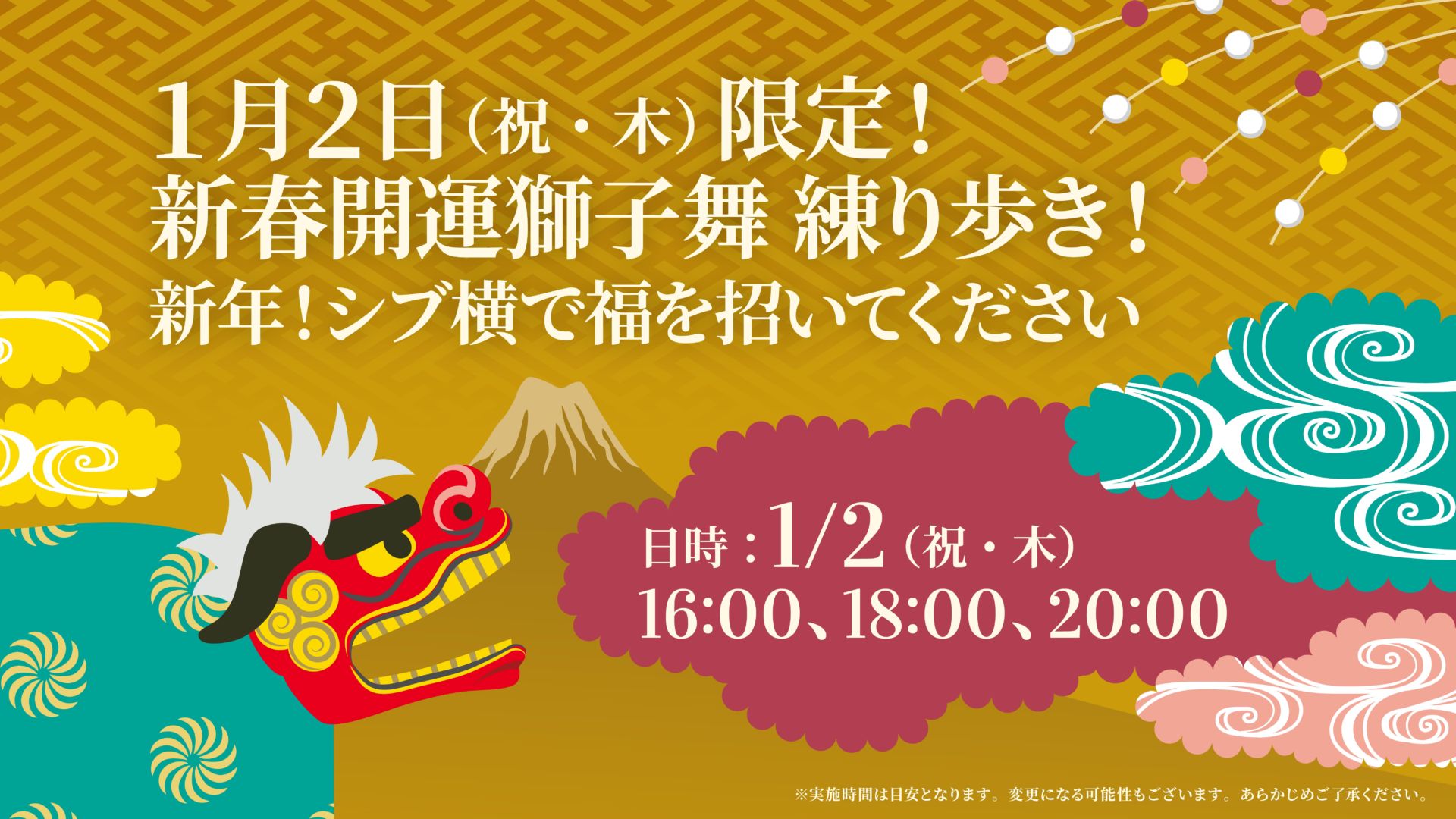 毎年恒例の獅子舞練り歩きイベントが今年も開催されます。 新年はシブ横で福を招いてください!