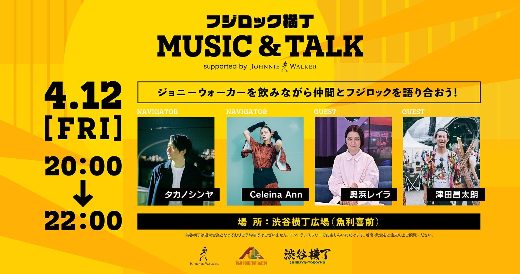 supported by JOHNNIE WALKER渋谷横丁では、6/16(金)〜 6/30(金)の期間「ジョニーウォーカーフェア」を開催致します。 期間中は全店舗にて「ジョニーウォーカー ブラックラベル 12 年」によるジョニーハイボールをお楽しみ頂けます。 またフェア期間中の 6/17(土)、6/24(土)に、ジョニーウォーカーが2018 年からサポートしている日本最大級の大型フェスティバル FUJI ROCK FESTIVAL とコラボレーションが実現。フジロックにゆかりがある方をミュージックセレクターとして お招きし、店内に出演アーティストの楽曲をたっぷりお届け致します。 週末は、フジロック横丁でジョニーウォーカーを飲んで、みんなで歌って!楽しもう! *渋谷横丁は通常営業となっておりご予約制ではございません。着席・飲食をご注文の上ご観覧ください。